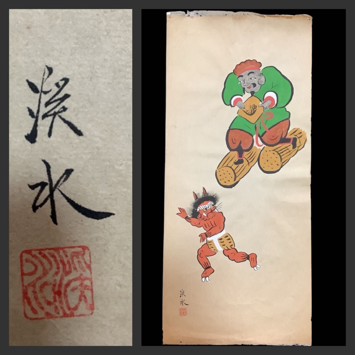 - 【模写】捲りJun777[[渓水作 大津絵 鬼は外]彩色紙本 書いたもの/日本画 民画 仏画 民俗絵画 風刺画 戯画 鬼 節分 大黒天