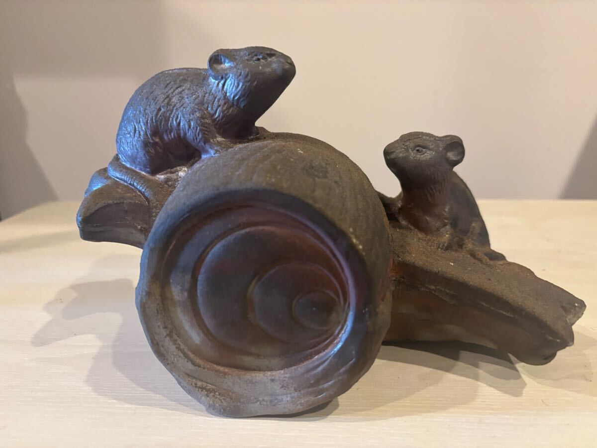 - 置物 縁起物 備前焼 置き物 ネズミ 0236