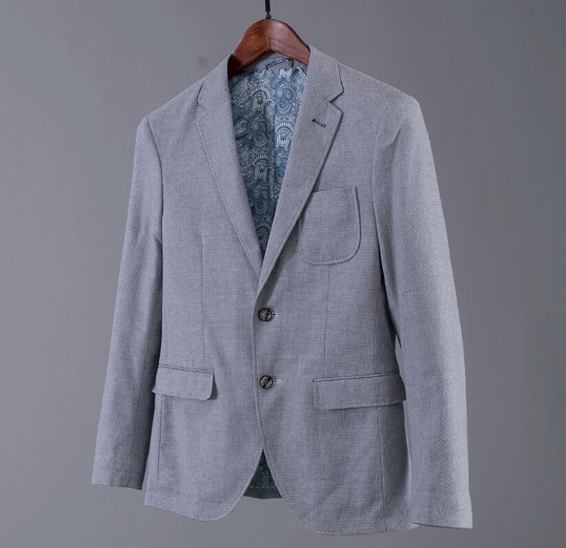 > 人気品新品 綿麻混 メッシュテーラードジャケットメンズ薄手通気性微ストレッチ サマーライトアウター春夏ブレザー/ グレーサイズ選択可
