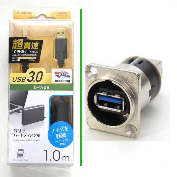 - <ノイトリック NAUSB3 パネルマウント型USB3.0中継アダプター>x1、<エレコム USB3-BF10BK USB3.0ケーブル 1m>x1 まとめて