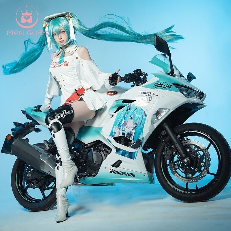 - 新品未使用 初音ミク レーシング2023 コスプレ衣装 フルセット 袖付き 上衣・短パン・帽子・小物付き 高品質素材 豪華デザイン