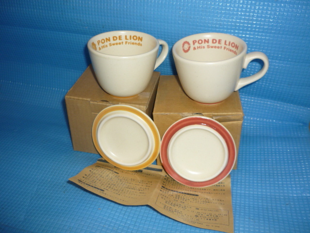 > E★未使用・非売品★2005年ミスタードーナツ ★ 陶器蓋付き マグカップ ポン・デ・ライオン & フレンチウーラー2種セット