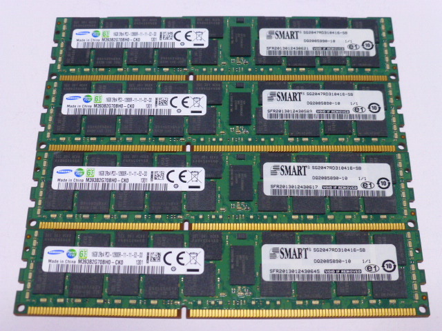 - メモリ サーバーパソコン用 1.5V Samsung PC3-12800R(DDR3-1600R) ECC Registered 16GBx4枚 合計64GB 起動確認済です M393B2G70BH0-CK0①