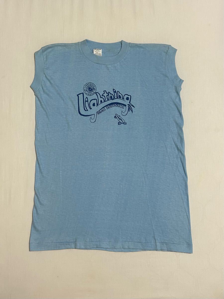 > デッドストック◎70s 80s vintage パキ綿 タンクトップ Tシャツ L 水色 ヴィンテージ L OLD SKATE SANTA CRUZ POWELL 90s オールドスケート
