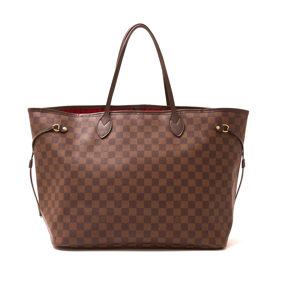 - LOUIS VUITTON ルイヴィトン ネヴァーフル GM N51106 トート ショルダーバッグ ダミエ・エベヌ×レザー ブラウン×ゴールド レディース