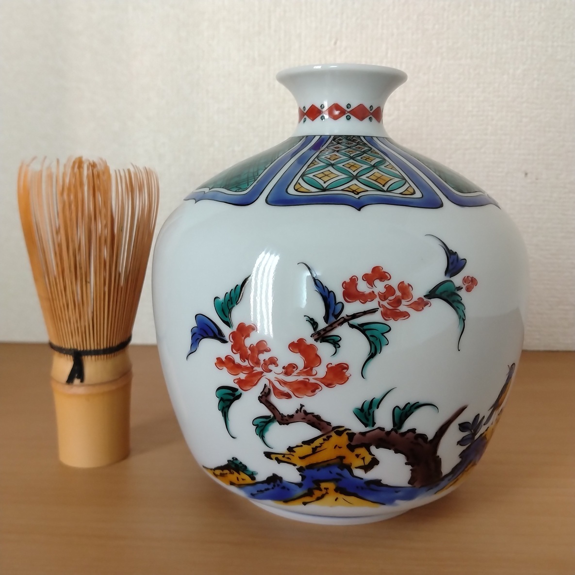 - 九谷焼 中村重人 伝統工芸士 花瓶 花入 小鳥 川沿い