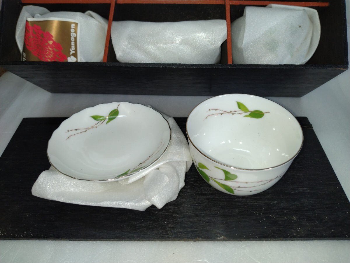 - K179【新品/保管品】 創陶 草花 小皿付湯呑 5客揃 収納木箱