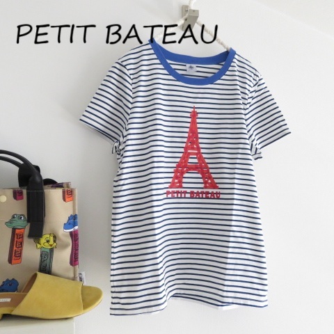 - 送料込 匿名配送 PETIT BATEAU プチバトー ボーダー エッフェル塔 Tシャツ M