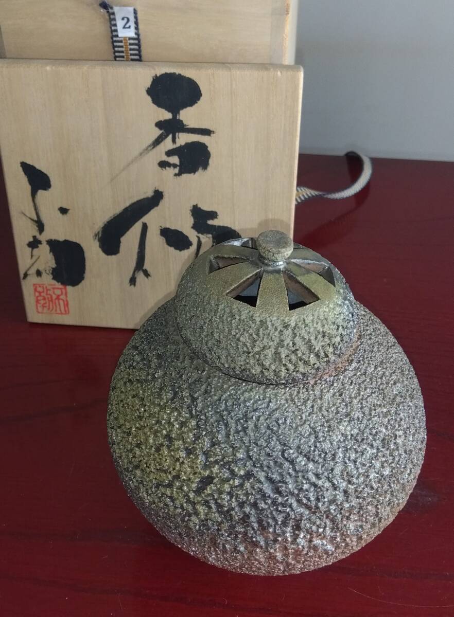 - 越前焼の名工 白越不朝(塩越窯)自然灰釉の究極美が迸る逸品灰釉美 香炉 No:2