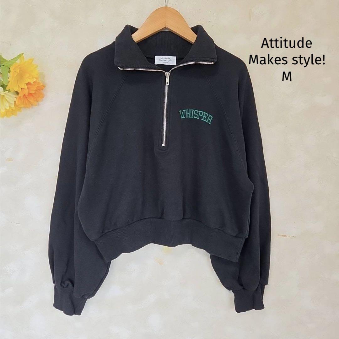 - Attitude Makes style! パーカー【M】クロップド 黒 ジップ