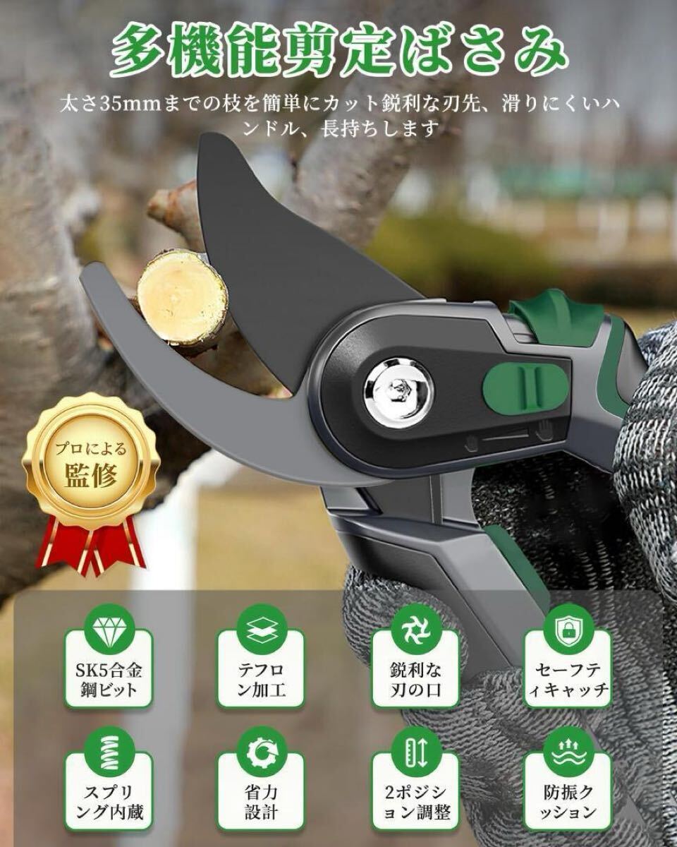 - 剪定バサミ 剪定ばさみ 剪定鋏 2段階調節可能 強力 枝切りバサミ 園芸ハサミ 園芸 開口部35mm 果樹 庭木 盆栽 庭園 ガーデニング 観葉植物