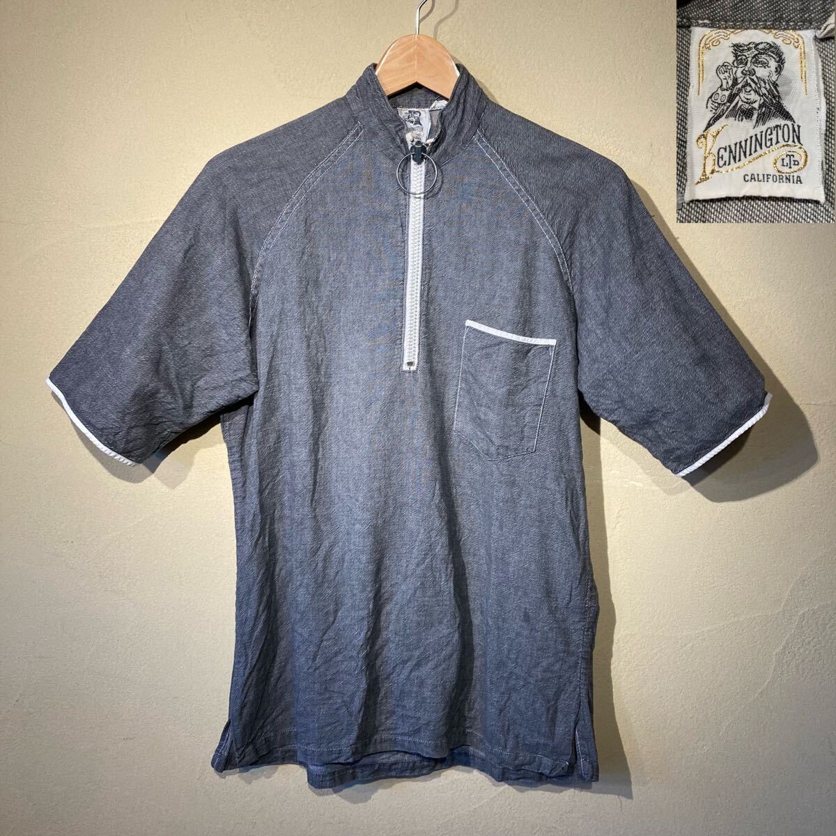 > 70's ヴィンテージ 古着 KENNINGTON ケニントン ブラックシャンブレー 黒シャン 半袖シャツ ハーフジップ ブラックデニム