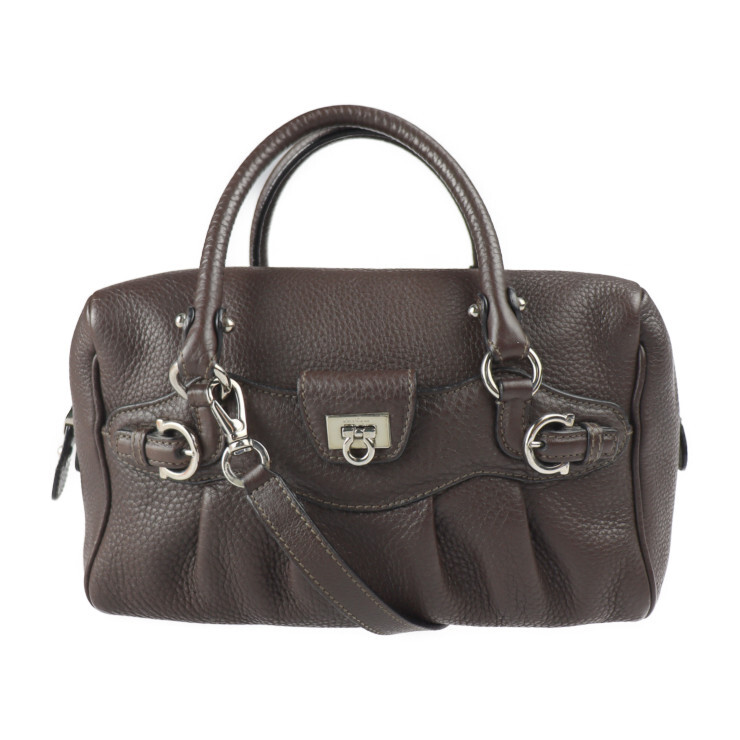 - 超美品 サルヴァトーレ フェラガモ ガンチーニ ハンドバッグ 21 6878 ダークブラウン 2WAY ミニボストン【本物保証】