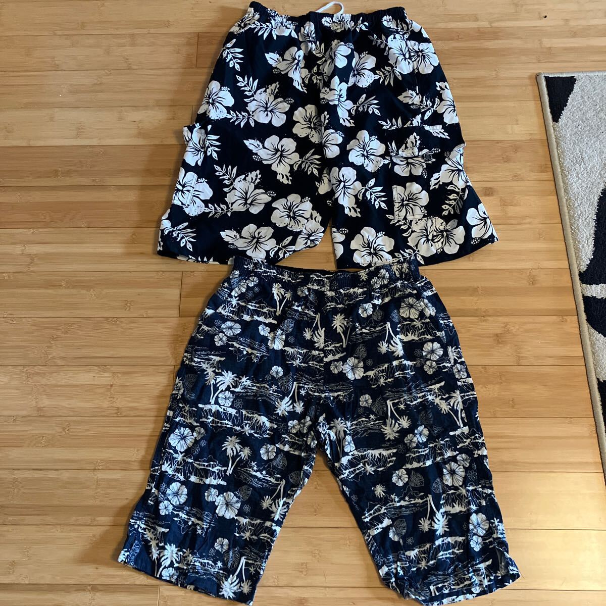 - ショートパンツ ハーフパンツ 半ズボン 半パン アロハ ハイビスカス Lサイズ ブラック BLACK ネイビー 紺色 水着