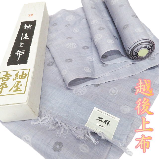 - 特選 越後上布 着物 反物 素材 未仕立て 本麻 紬屋吉平 丸模様 箱付き 薄墨色 多色 きもの北條 A1220-1