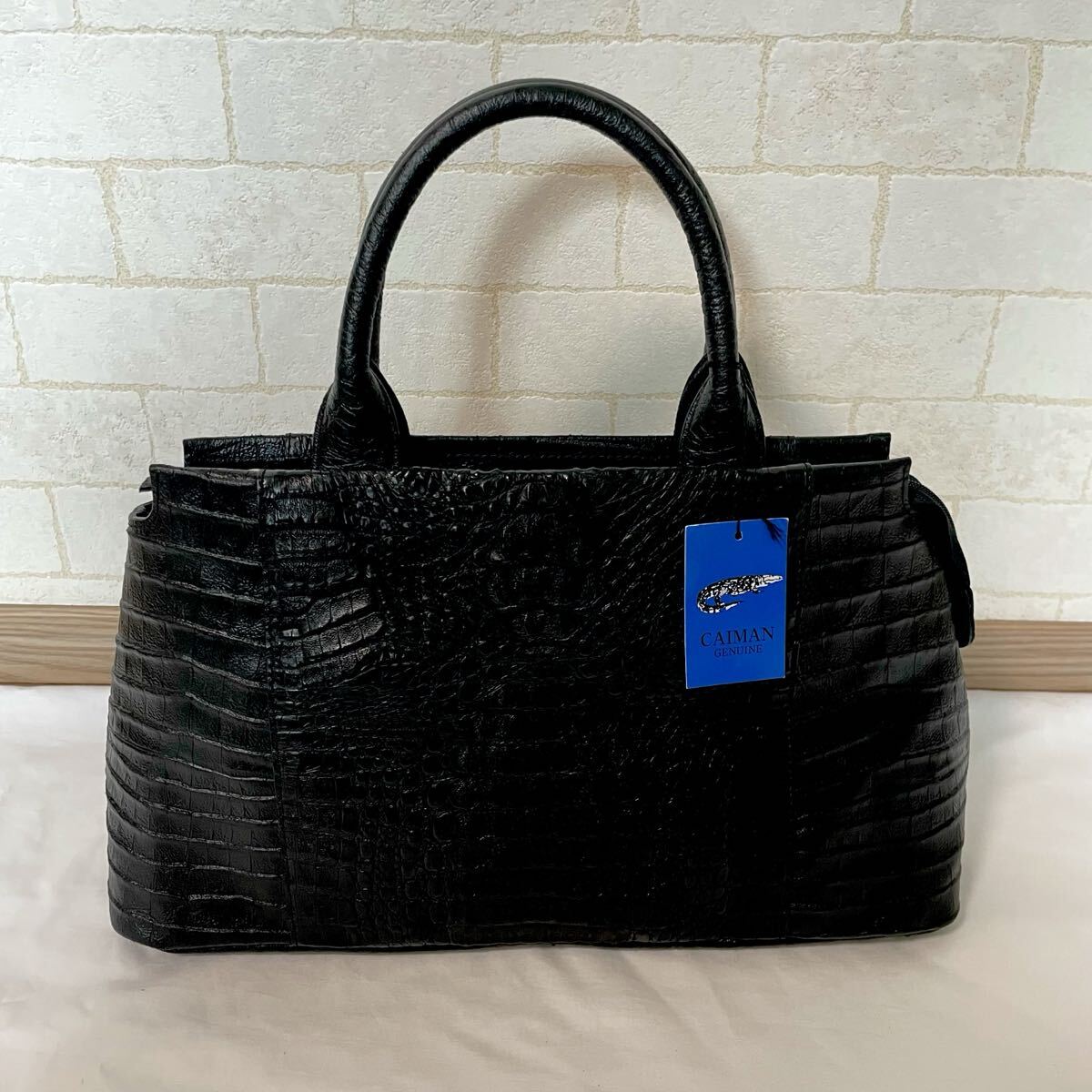- CAIMAN GENUINE カイマンレザー ワニ革 フォーマル ハンドバッグ ブラック 黒 タグ付き未使用 レディース 鞄 カバン 1990