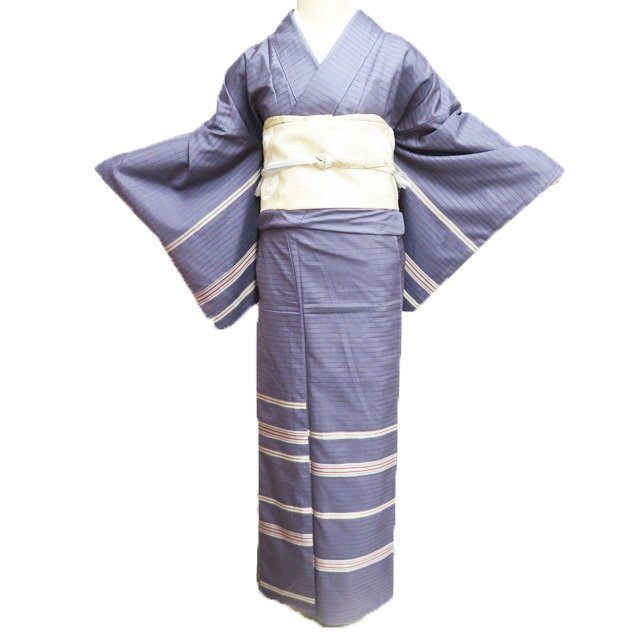 - 付下げ 付け下げ 訪問着 着物 中古 正絹 袷 カジュアル 絽目 鳩羽鼠色 多色 金 身丈162cm 裄65.5cm M きもの北條 A1220-5