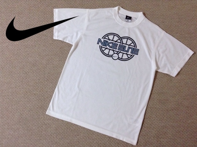> ★中古★ナイキ DRI-FIT エリート バスケットボール Tシャツ ホワイト 白 Mサイズ 部活 練習 プリントロゴ NIKE ELITE 479770-101