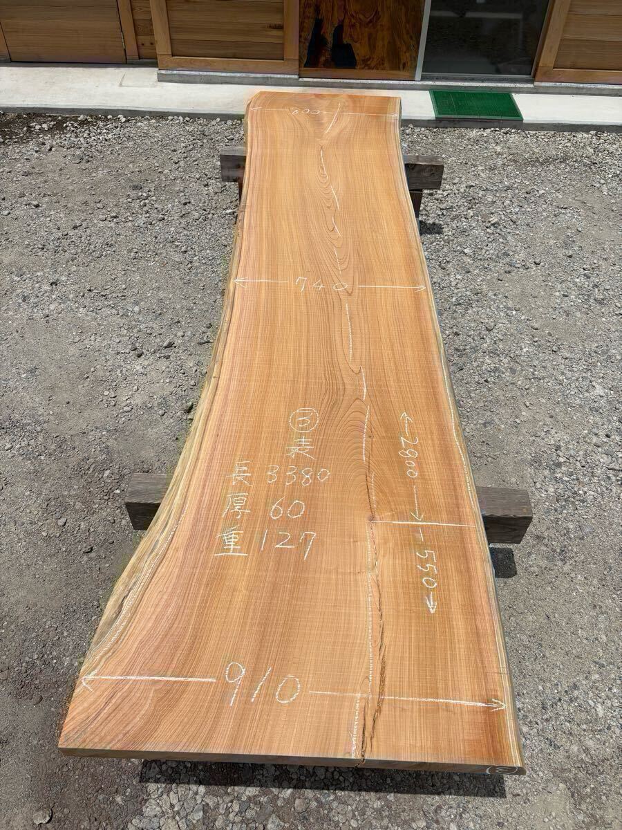 - 欅 ③ 一枚板 特大 長さ約3.4m カウンター テーブル ベンチ レジン 看板 ディスプレイ シェルフ リフォーム 店舗 リノベーション