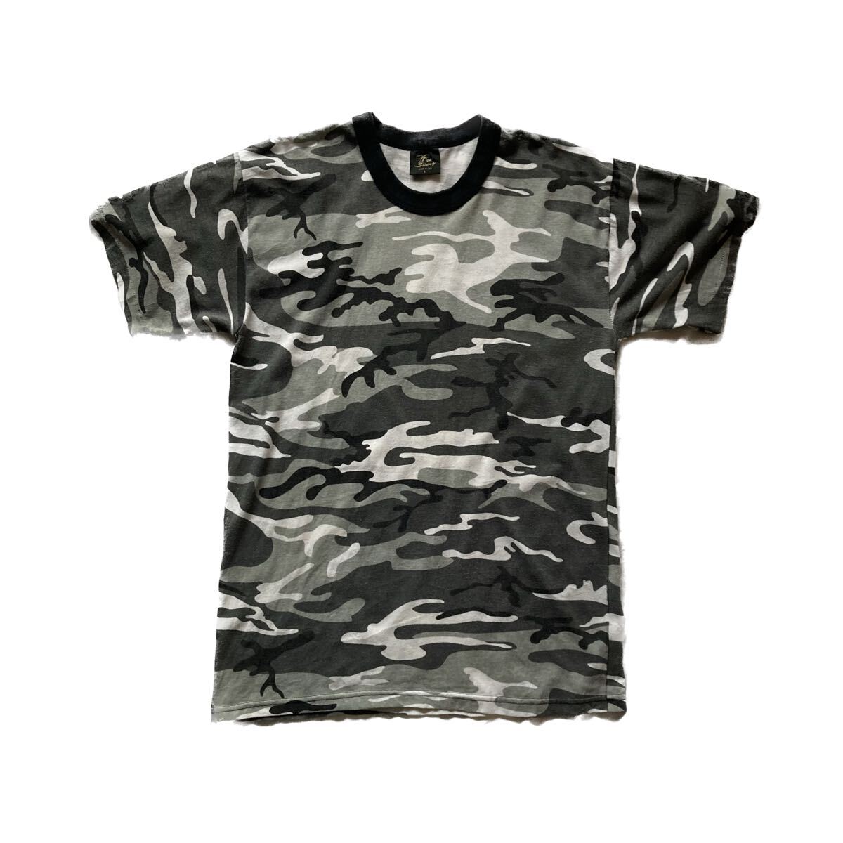 > 【希少】80s USA製モノトーン迷彩リンガーネックTシャツ L ヴィンテージ アメリカ ビンテージ カモフラージュ 袖裾シングルステッチ 古着