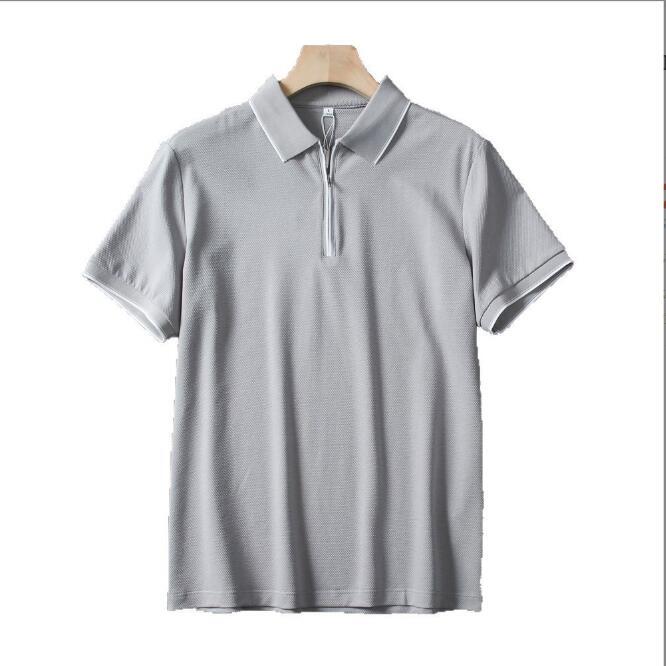 - 大人気お色選択可 冷感シルク 新品 メンズ半袖ポロシャツ ゴルフ 夏服 ハーフジップ 薄手 通気性 ポロカラー Tシャツ/灰色