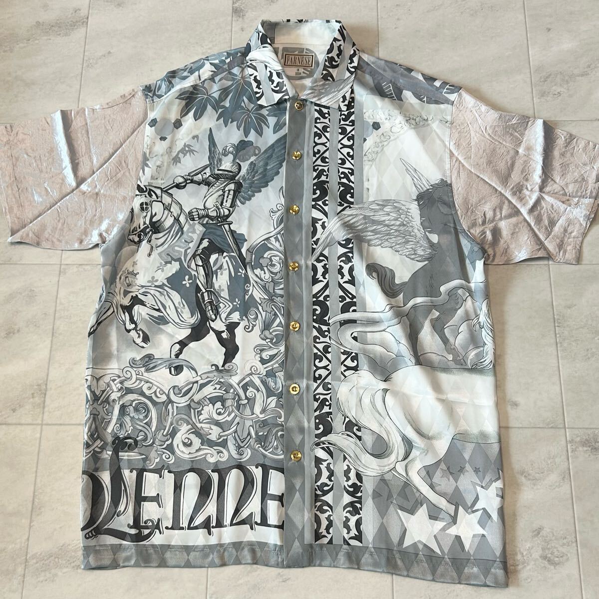- FARNESE 総柄 柄シャツ 騎士 白馬 レトロ アート ビンテージ 半袖シャツ ポリエステル100%