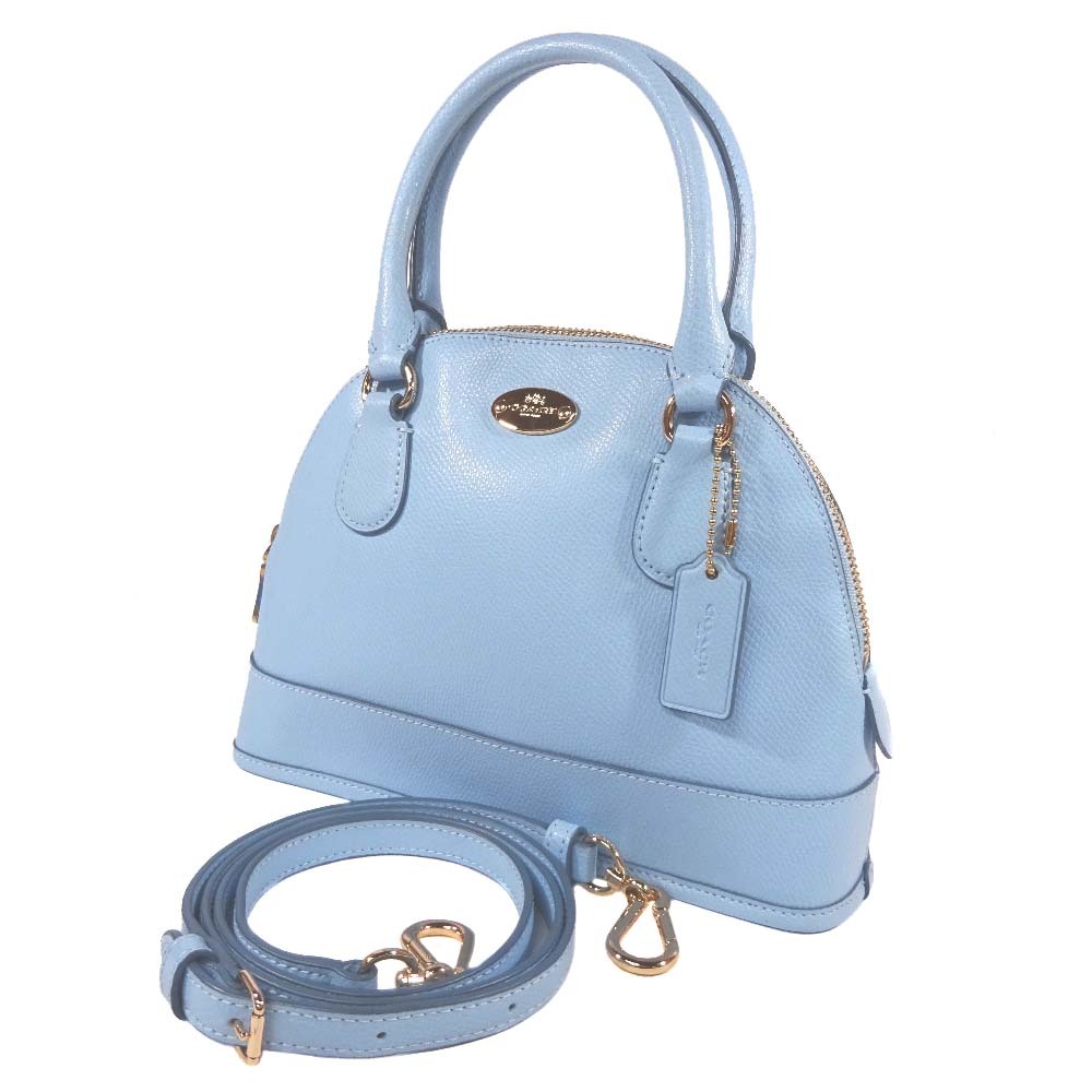 - 美品 コーチ ミニ コーラ ドームド サッチェル 2WAY ショルダーバッグ ハンドバッグ レディース レザー ブルー F34090 中古