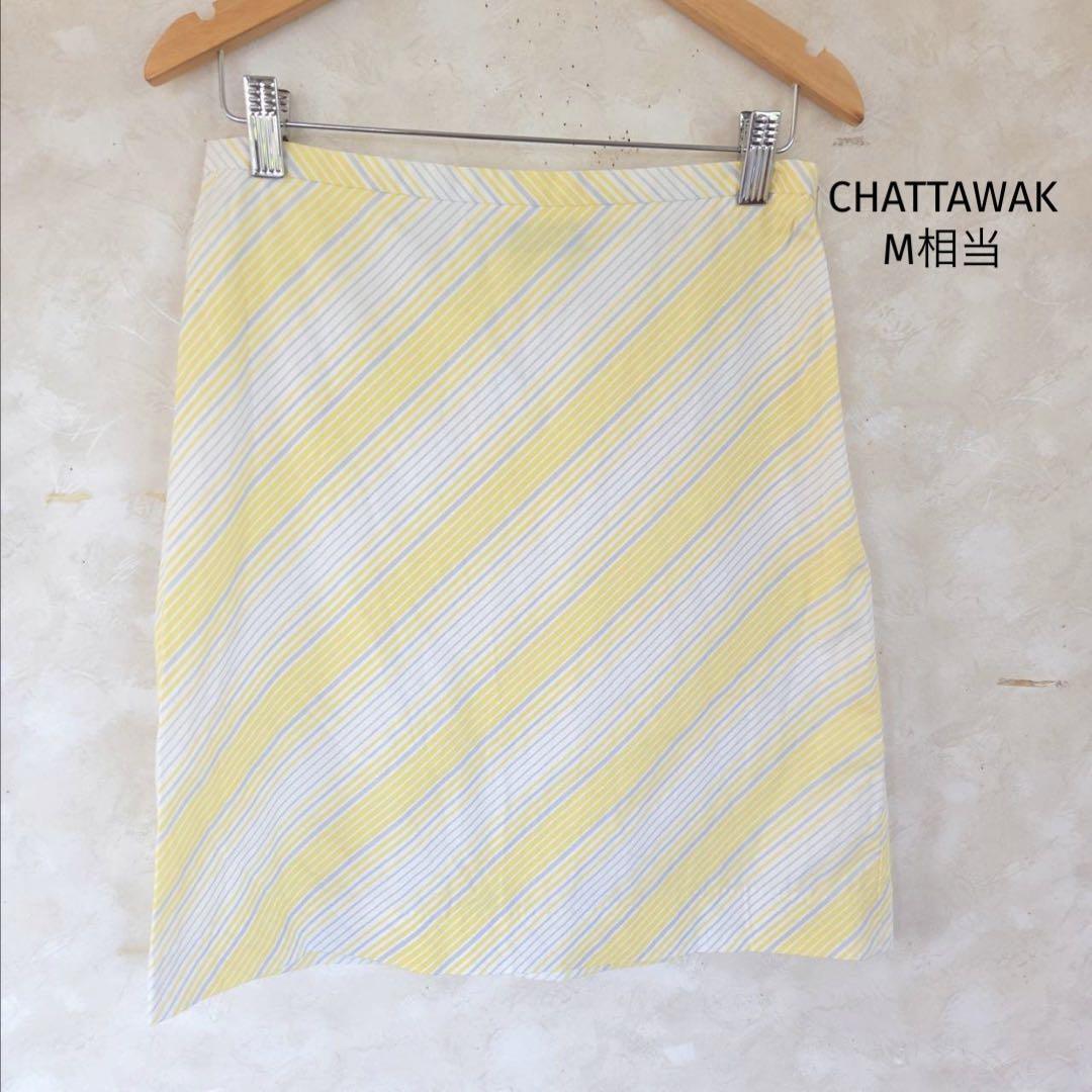 - 松坂屋 シャトワック スカート 膝上丈【M相当】タイト 黄色 総柄
