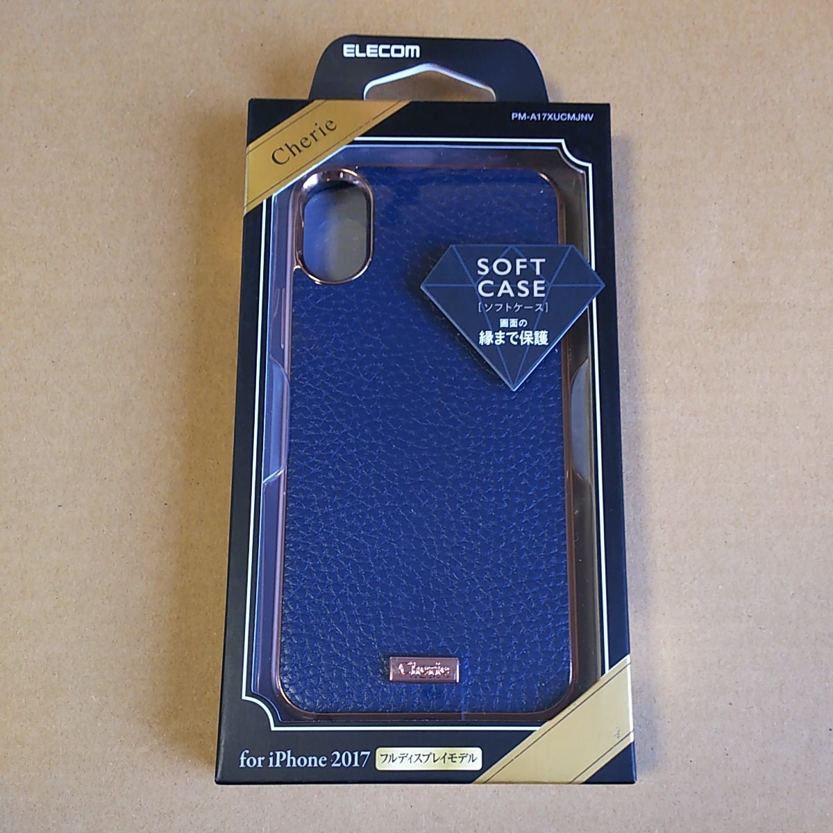 > ◎ELECOM iPhoneXSiPhoneXケースCherieソフトケースソフトレザーゴールドメッキ ネイビー PM-A17XUCMJNV