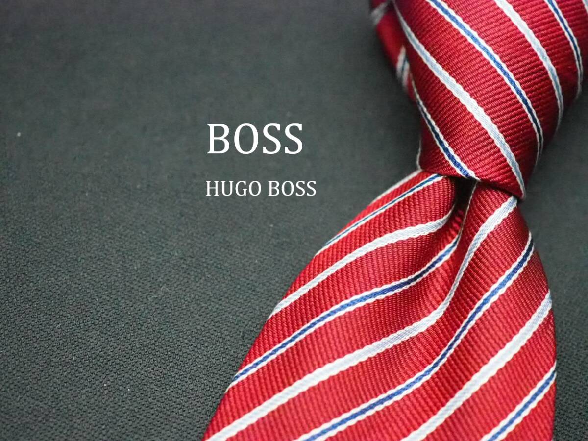 - 美品【HUGO BOSS ヒューゴ ボス】 E2785 赤系 SILK ブランド ネクタイ 古着 良品