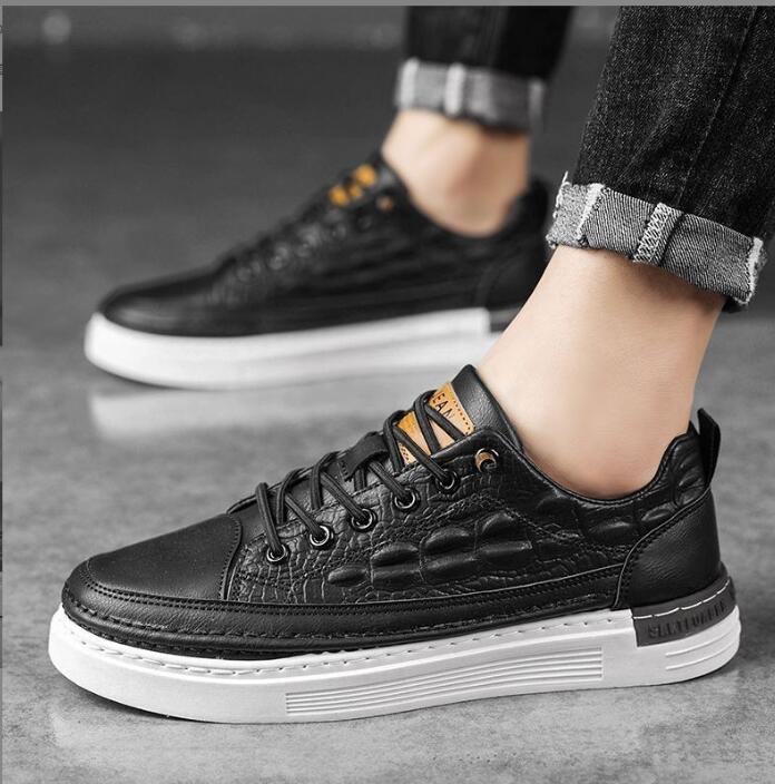- 人気スニーカー スリッポン デッキシューズ PU革靴 ローカット 撥水 スリッポンシューズ ぺたんこ スケーボー ワニ柄 ブラック 26cm