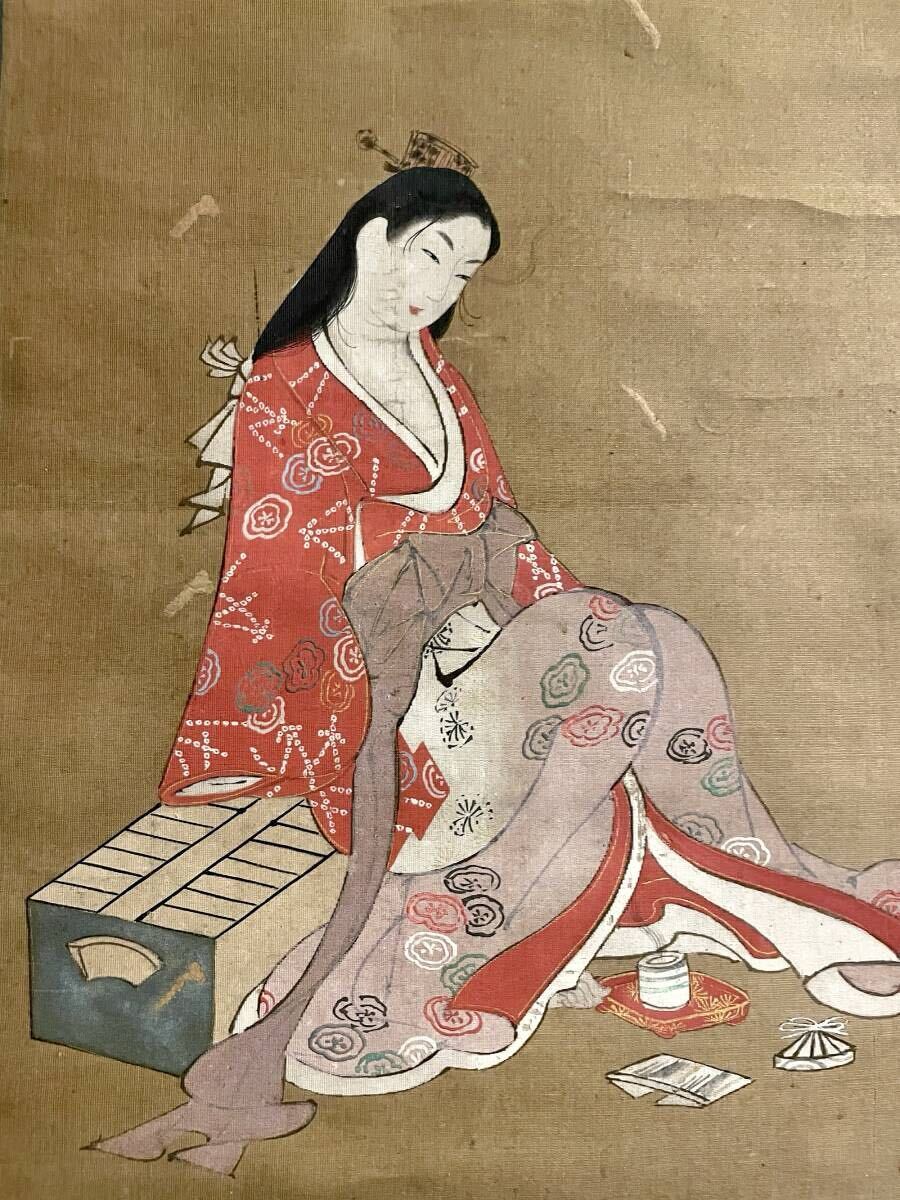 > 優品 肉筆浮世絵 伝・宮川一笑「美人図」肉筆 絹本 着色 掛軸 讃者不詳■江戸絵画 宮川長春の門人 骨董 古美術■a766