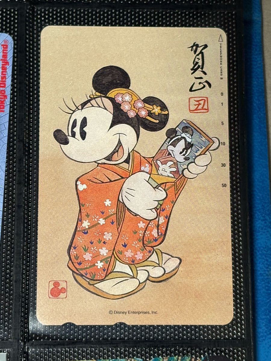 - ディズニー ミニーちゃん 和装 着物 浮世絵風 テレホンカード 50度数