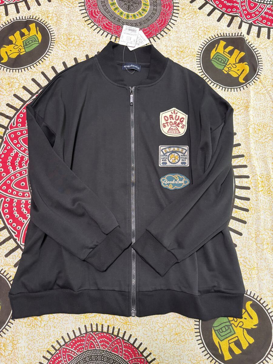 - 15号F*定価13,200円*ドラッグストアーズ*ワッペン♪ブルゾン/ジャンパー*新品*大きいサイズ*ゆったり*黒綿ぶたブタ豚柄