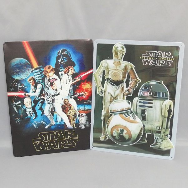 - ★STAR WARS エピソード4 C-3PO R2-D2 BB-8 ブリキ アート 看板 2枚 セット スターウォーズ★