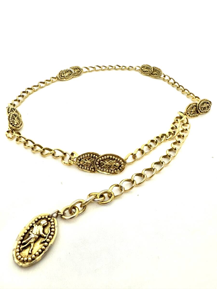 - 7F2912【本物保証】シャネル チェーン ベルト ネックレス 狩人 コイン メダル ゴールド vintage CHANEL