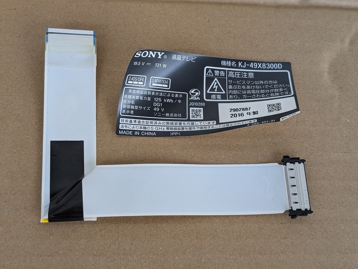 > KJ-49X8300D SONY BRAVIA パーツ LVDS映像信号ケーブル 破損無し Android 初期化OK 基盤 技術サポート可 条件付返品可 基板 正常品 テレビ