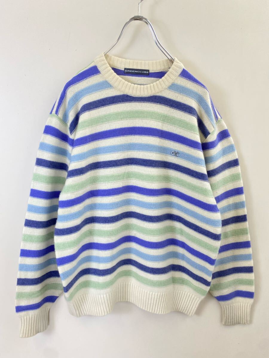 - ★ GREENCLUB カシミヤ100% セーター 白/青 サイズ4 *美グラデーションボーダー* クルーネック ニット グリーンクラブ ◆W14 さCTI8-36