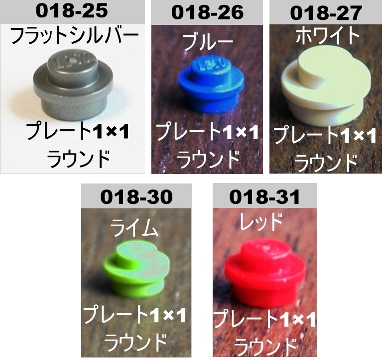 > レゴ パーツ★0184 プレート1×1 ラウンド フラットシルバー・ブルー・ホワイト・ライム・レッド★全119パーツ★5円/パーツ