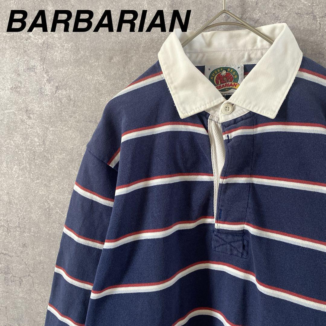- 90sBARBARIAN カナダ製 ボーダーラガーシャツ 長袖 メンズSサイズ