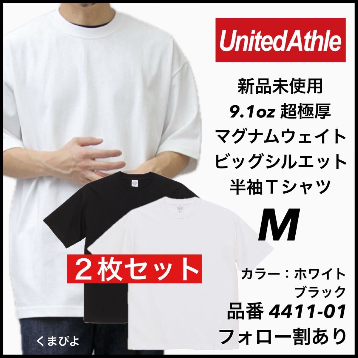 > 新品未使用 ユナイテッドアスレ 9.1oz 超極厚 マグナムウェイト ビッグシルエット 半袖Tシャツ 白 黒 Mサイズ 2枚 United Athle