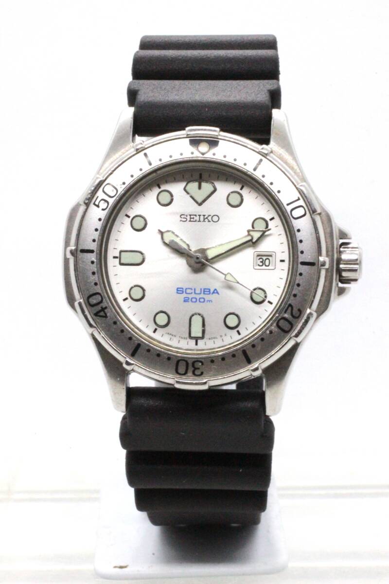 - 【SEIKO】SCUBA 200m 7N35-6000 QUARTZ JAPAN A STAINLESS STEEL 未使用 SEIKOウレタンバンド装着中古品時計 電池交換済み 25.7.1