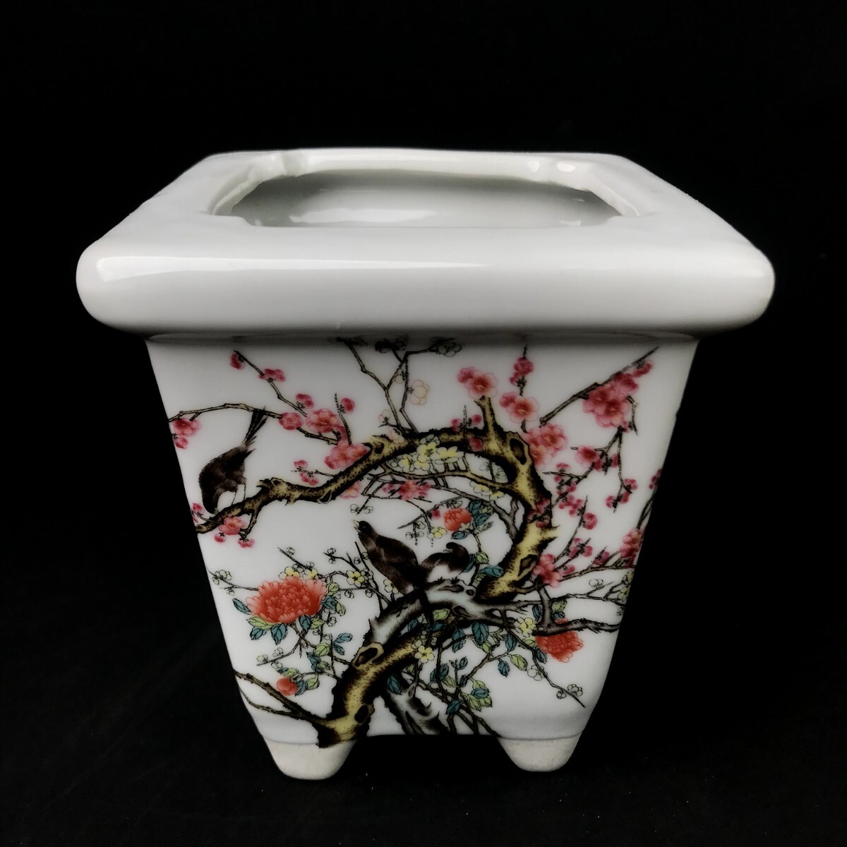 - 中国古美術 清時代 色絵 盆器 植木鉢 盆栽鉢 蘭鉢 古玩 骨董品 唐物 時代物 当時物 置物 花図 陶磁器 小型植木鉢 園芸