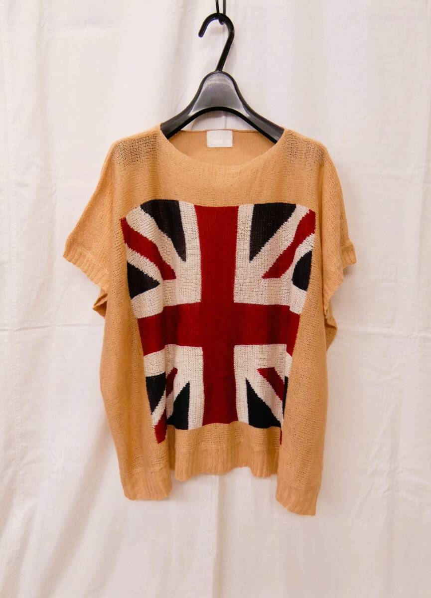 - ▼EMSEXCITE/エムズエキサイト▼ユニオンジャック柄サマーニット/M/薄橙色