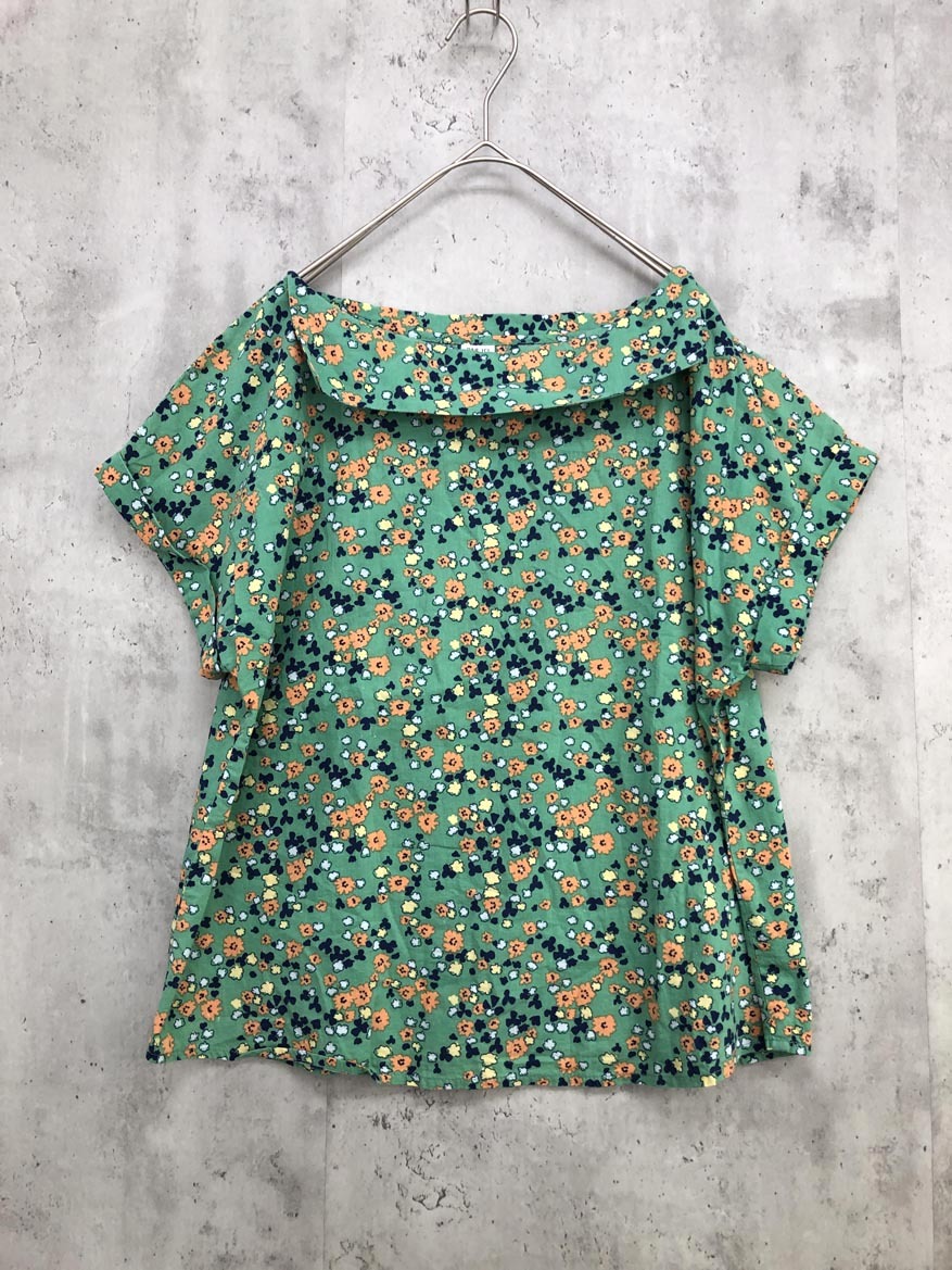 - ゆうパケットOK PAR ICI パーリッシィ コットン フラワー プリント 花柄 フレンチスリーブ ブラウス シャツ sizeF/グリーン系 ■◆