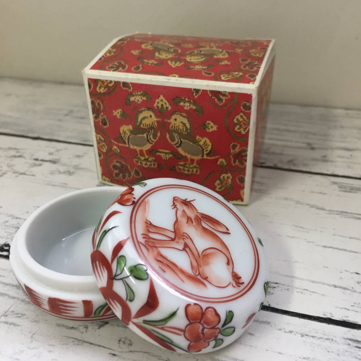 - 赤絵 香合 兎の絵柄 銘有 茶道具 茶道 Z5074