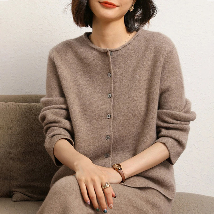 > セーター カシミヤ ニット カーディガン 保温性 カシミア 秋 冬 アウター レディースカーデ クルーネック ボタン Zcas0030 コーヒー色