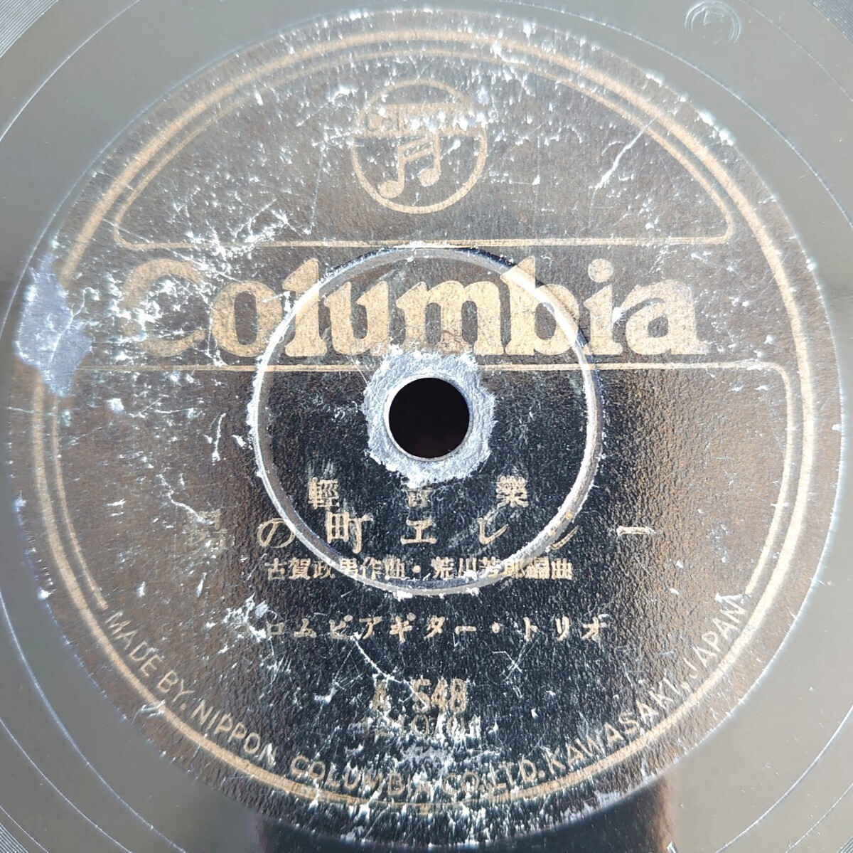 - 【SP盤レコード/縁に薄ヒビ多】Columbia A548 輕音樂/湯の町エレジー/涙の駒鳥/コロムビア・ギタートリオ
