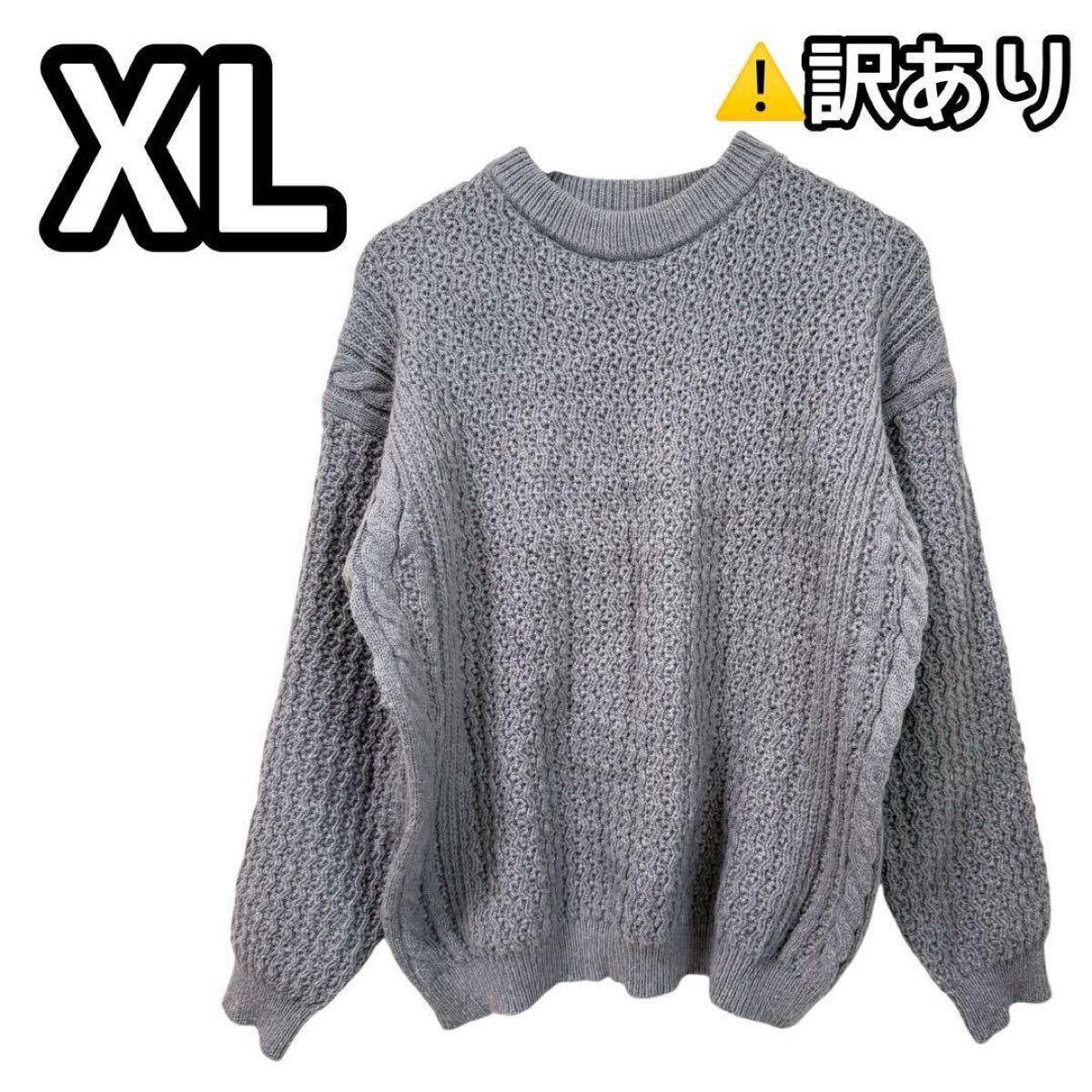 - セーター メンズ 冬 服 ニット クルーネック グレー XL 訳あり