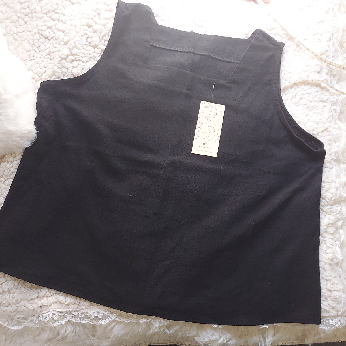 - ノースリーブ Lサイズ スクエア 黒 オシャレ 未使用 送185 上品 袖無し タグあり カットソー ベスト 夏
